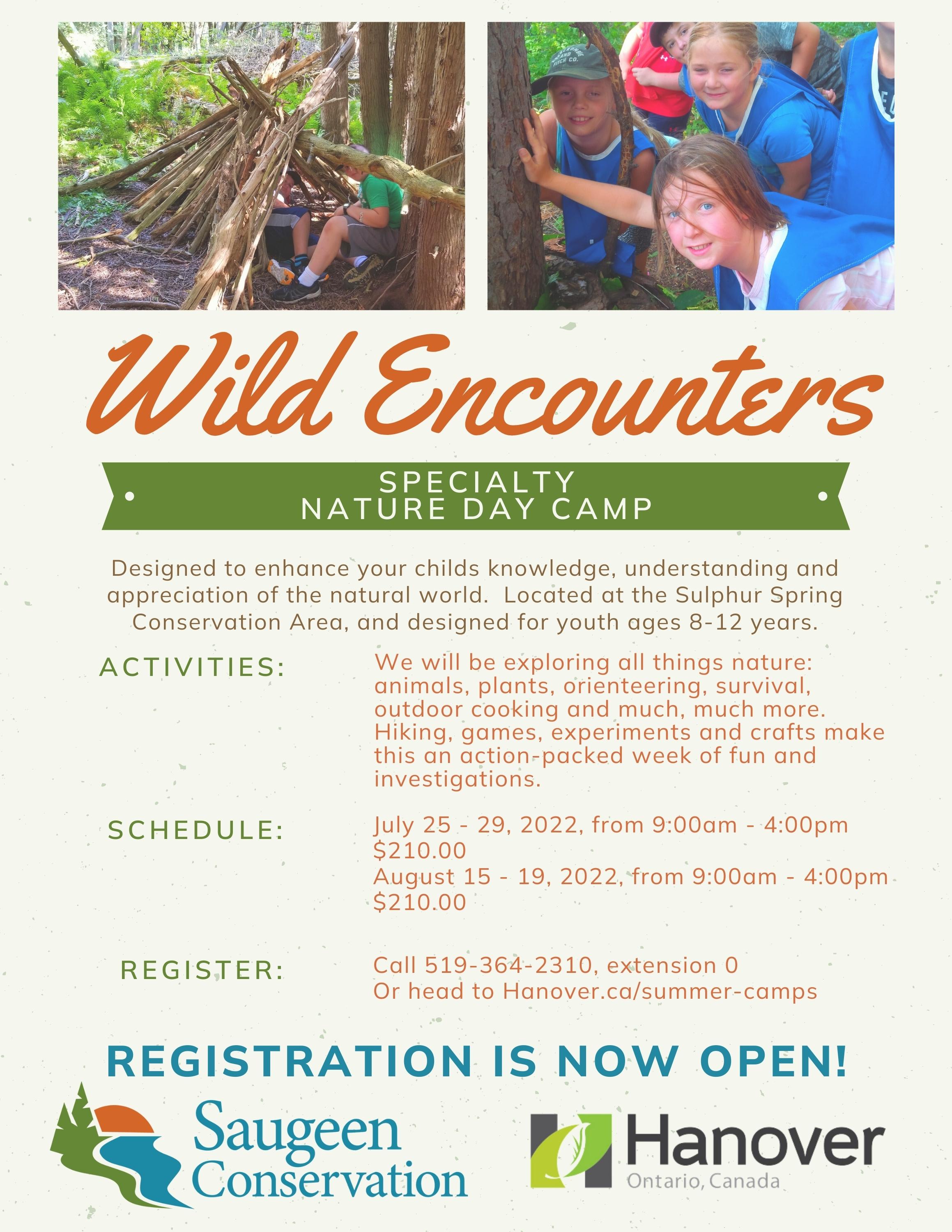 Designed to enhance your childs knowledge, understanding and appreciation of the natural world.Located at the Sulphur Spring Conservation Area, and designed for youth ages 8-12 years.